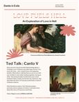 Have you ever found yourself daydreaming about a forbidden love? A Romeo and Juliet type of love? You know the story - star crossed lovers and opposing families. What about realizing that you are in love with your brother-in-law whilst reading together, having an affair, then being brutally murdered by your actual husband? Okay, maybe not the last one. However, that describes the story of Francesca and Paolo in Canto V of Dante's Inferno. Click this link to watch a Ted Talk discussing a summary and an analysis of Canto V and learn more about the story of Francesca and Paolo.